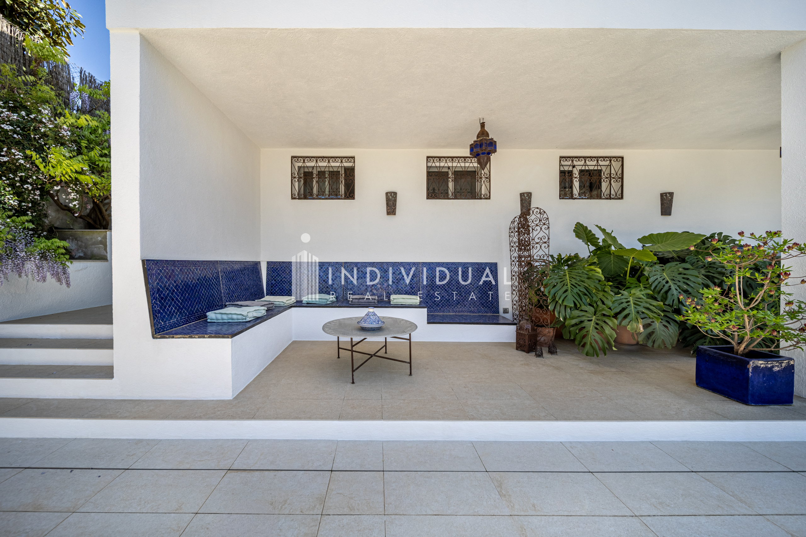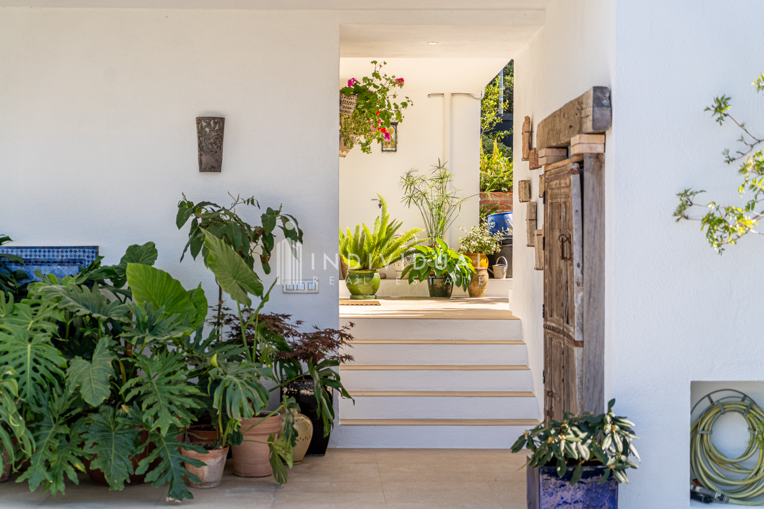 La propiedad disfruta de vistas abiertas a la montaña, amplias terrazas y un cuidado espacio exterior, donde el jardín combina vegetación ornamental con una piscina de agua salada con jacuzzi e hidromasaje, creando un entorno privado y agradable.