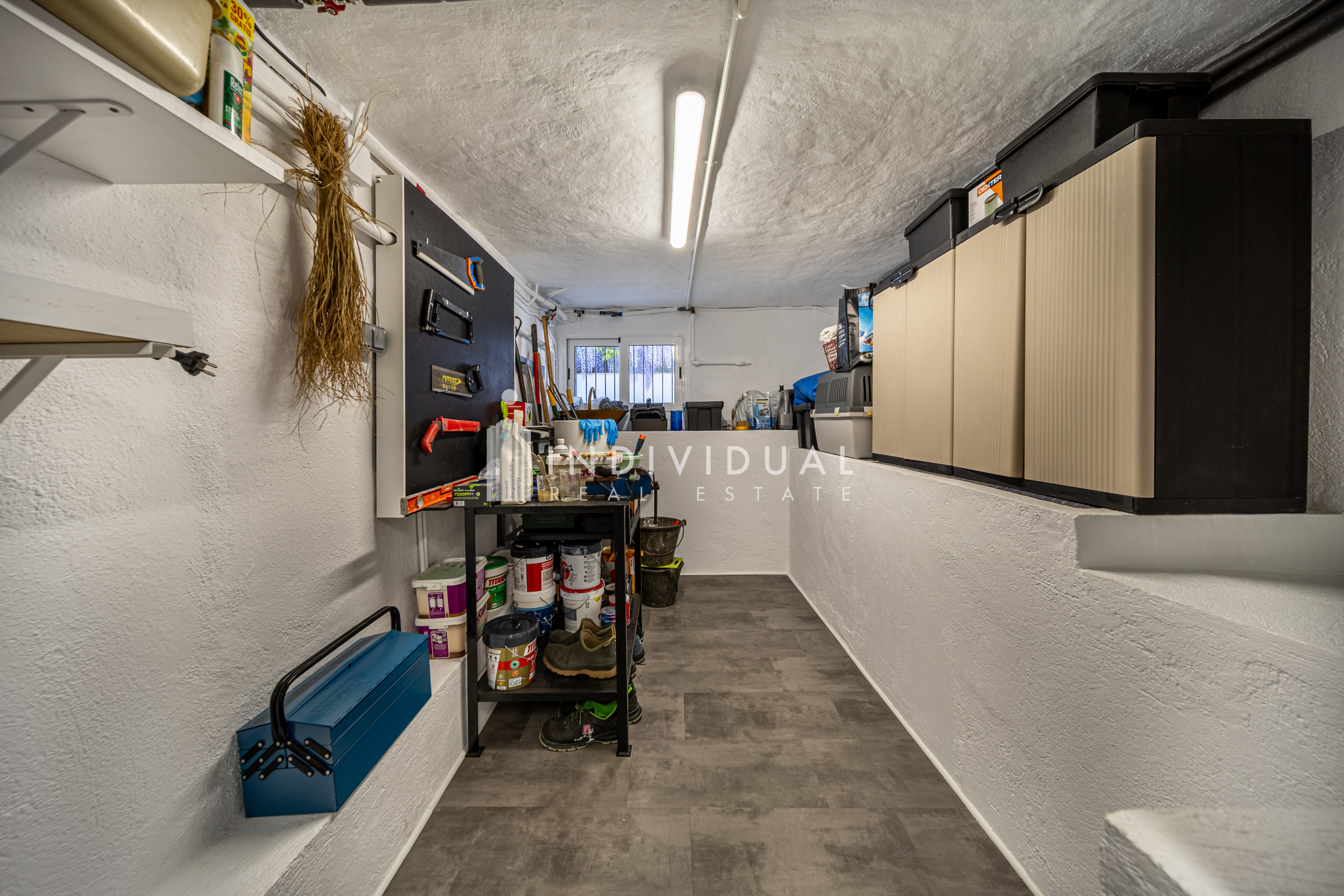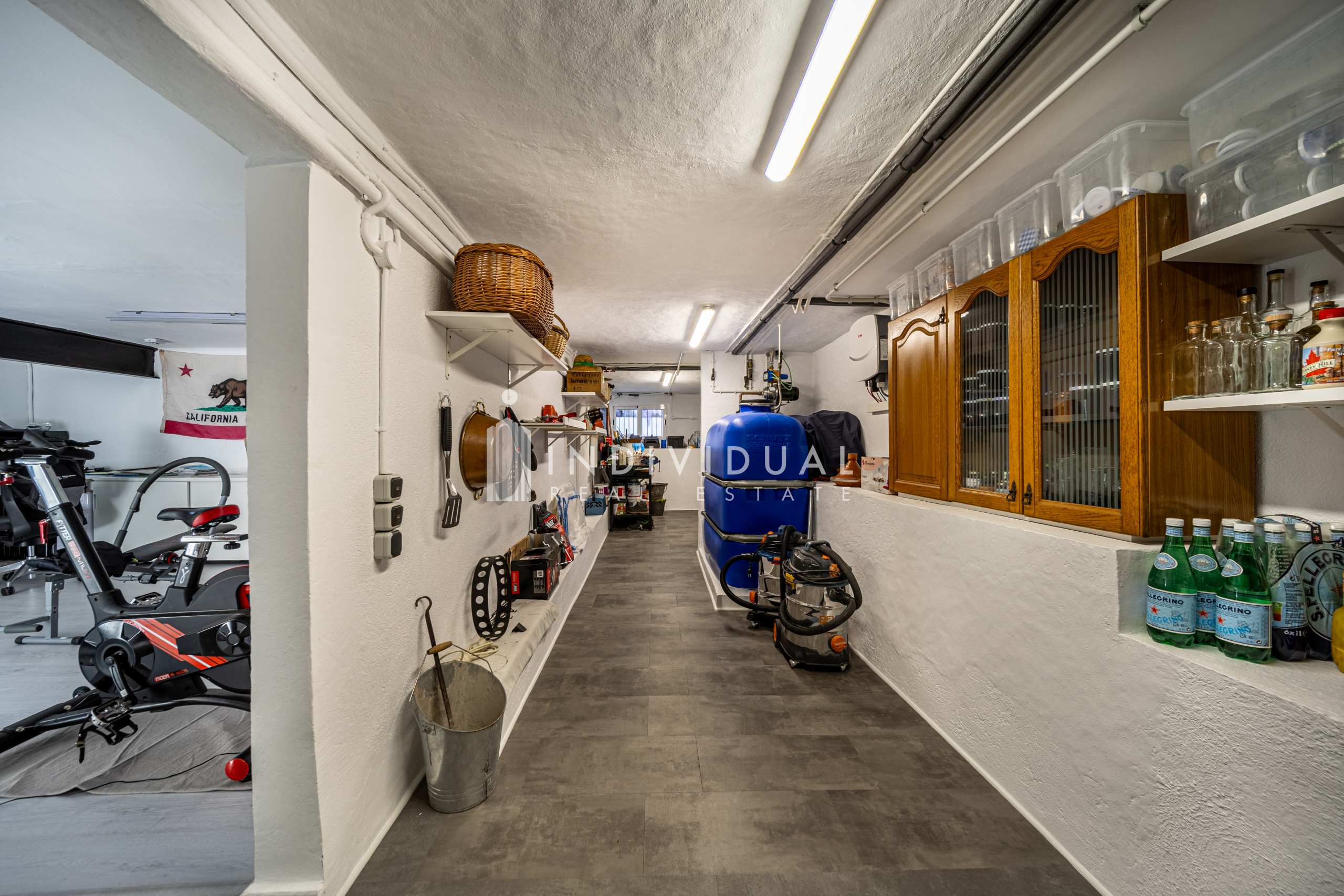 Además, se distribuye en dos amplias salas polivalentes, actualmente destinadas a zona de almacenaje y área funcional (lavadero e instalaciones), donde se ubica el depósito de agua adicional.