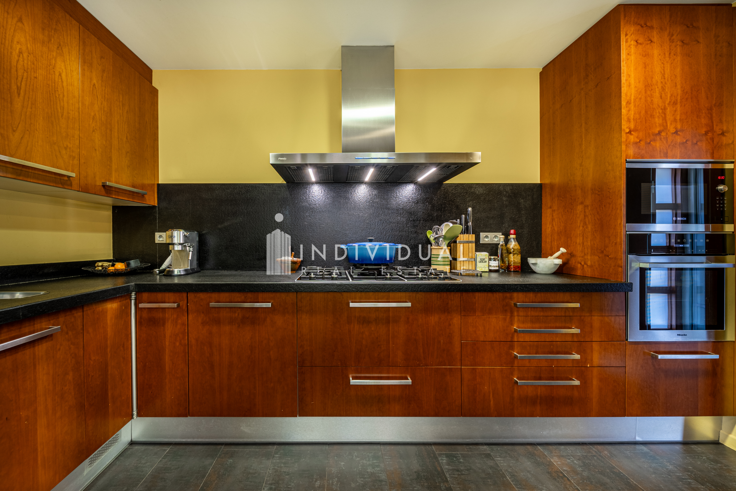 La cocina, de estilo office y equipada con electrodomésticos de alta gama, se integra de forma funcional en el conjunto.